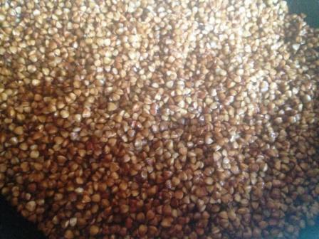 Гречку промыть и просушить на смазанной маслом сковороде.