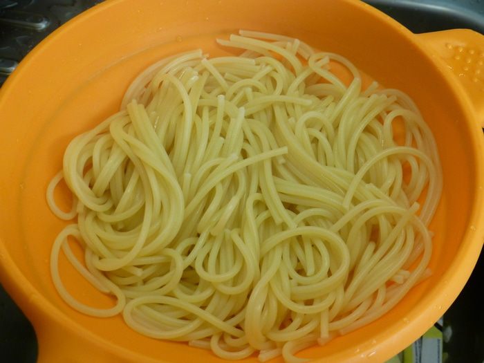 Отвариваем спагетти в подсоленной воде.