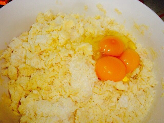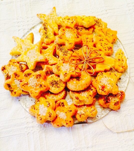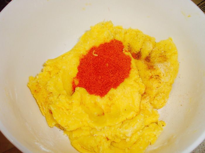 По рецепту тесто надо положить в холодильник на час, но я обычно сразу приступаю к выпечке. Как вы видите из фото, я разделила тесто на 2 части. В одну часть я положила только мускатный орех, это на тот случай, если в семье ребенок или кто-то у вас не любит перец.