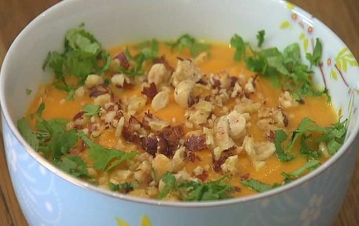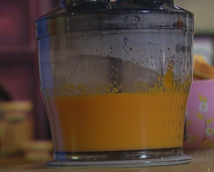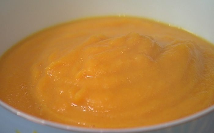 Отваренную тыкву измельчить в блендере в гладкое, однородное пюре.