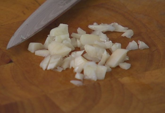 Чеснок почистить и мелко порезать.