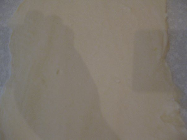 Тесто заранее разморозить. Раскатать в виде прямоугольника, которым нужно будет обернуть кусок мяса. Края теста смазать взбитым яйцом.