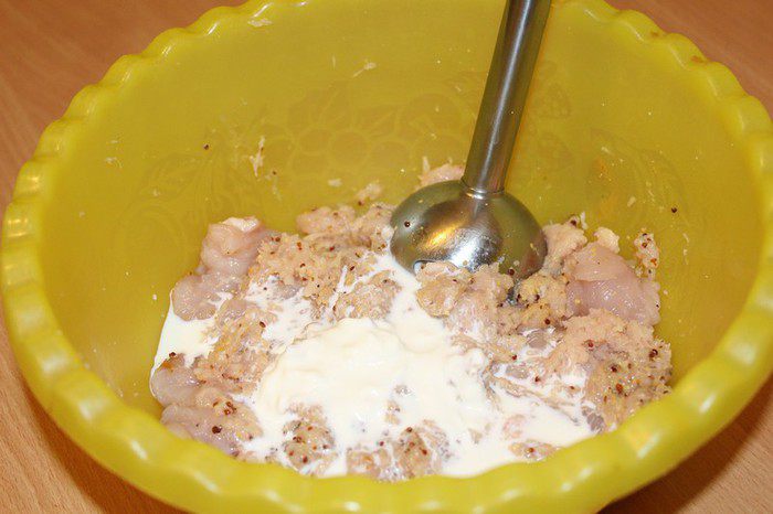 Добавить сливки, измельчаем погружным блендером.