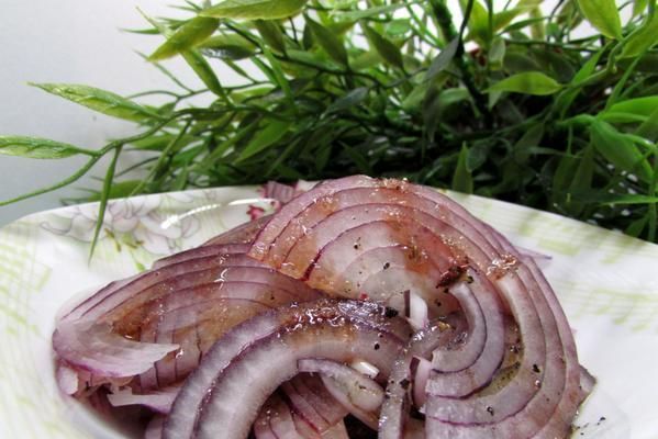 Добавить лук с заправкой и ещё раз осторожно перемешать. Переложить в салатницу.