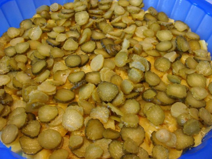 Каторфель и морковь, предварительно очистить, нарезать мелким кубиком.