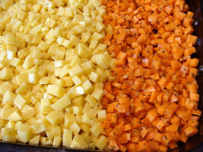 Картофель смешать с куркумой, солью и 1 ст/л майонеза или масла растительного.