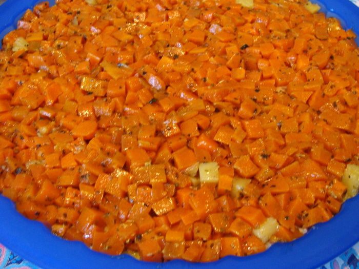 Морковь смешать с тимьяном, солью и растительным маслом.