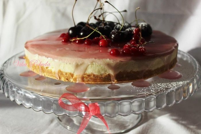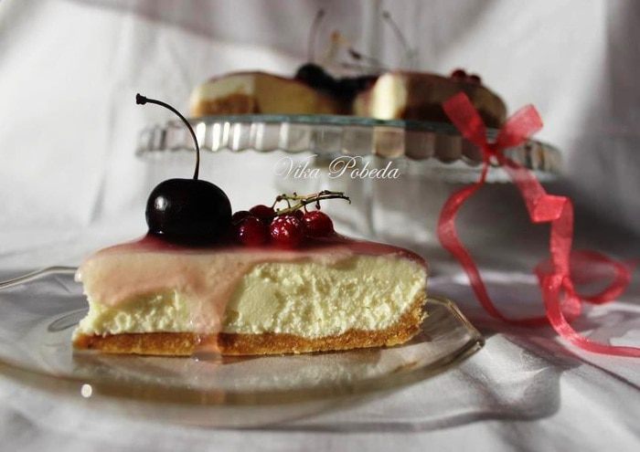 По консистенции чизкейк не такой плотный, как выпекаемый, но режется и форму держит, как видите, прекрасно, а по вкусу не уступает.