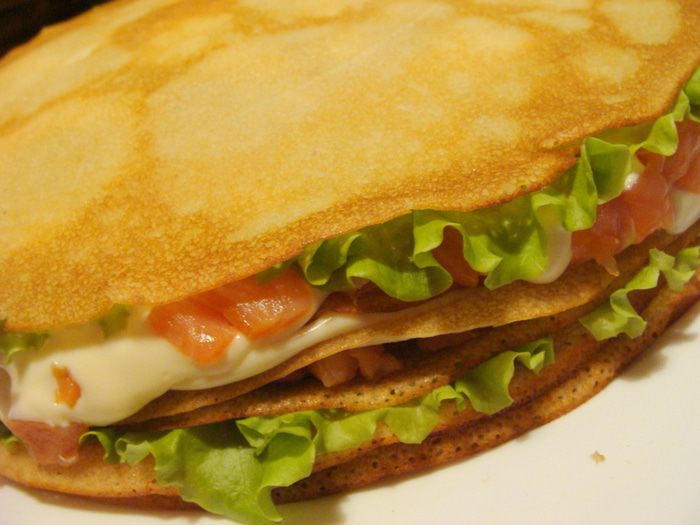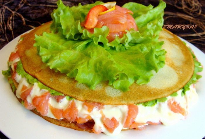 Можно использовать абсолютно любые блины! Простые на молоке, на кефире, на сыворотке, с добавлением любой муки, можно сразу нескольких видов! Разве что не шоколадные:)