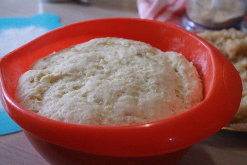 Замесить тесто, накрыть влажным полотенцем и оставить на 1 час в тепле и покое.