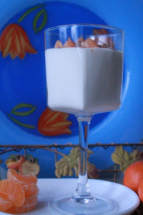 И лёгкий десерт: взбить 120 грамм творога с ванильным экстрактом и столовой ложкой сахарной пудры, и плюс 50 миллилитров молока. Добавить порезанный мандарин, а верх присыпать шоколадом.