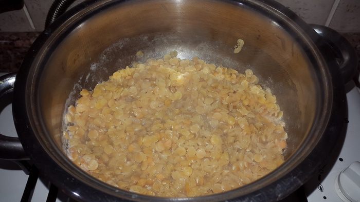 Когда чечевица готова, делаем из нее пюре и даем остыть.