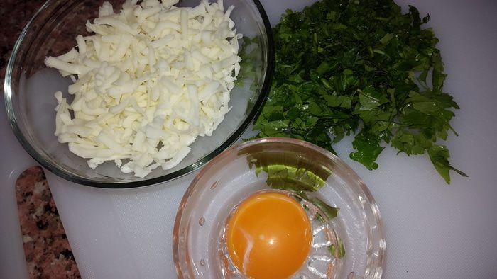 Отделяем желток от белка, сыр натираем на крупной терке, петрушку мелко рубим.