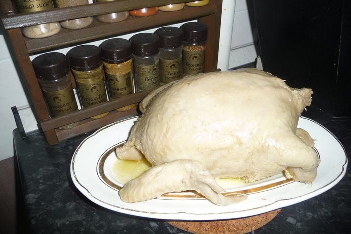 Куриные потроха отвариваем. Затем мелко режем. И вот здесь мнение родителей разделились, потому что одна бабушка потрошка мелко резала, а другая прокручивала на мясорубке. Кому как нравится. Я предпочитаю мелко нарезать. Вводим нарезанные потроха в остывшую масляно-луковую смесь.