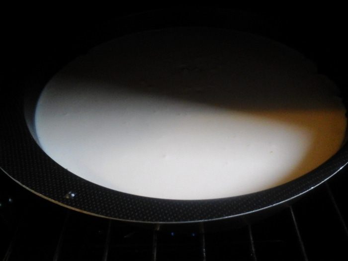 Агар-агар вылить в кастрюлю, добавить сахар, довести до кипения. Уменьшить огонь и варить 2 мин, все время перемешивая. Снять с огня дать немного остыть. Влить все в пюре манго, перемешать. Выложить все пюре на чизкейк и убрать в холодильник на 4 часа.