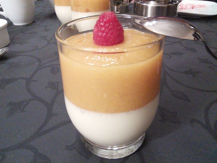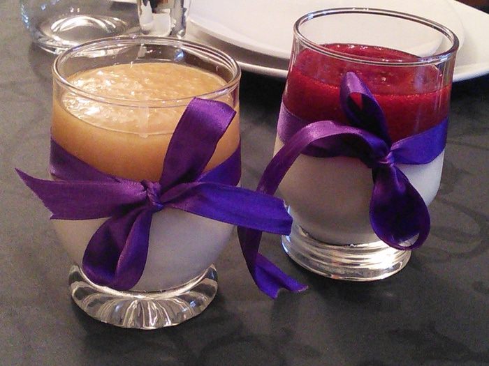 Когда панна-котта застынет, выложите сверху по три ложки желе, охладите до полного застывания желе. То же самое можно сделать с малиновым желе, его рецепт здесь http://www.edimdoma.ru/retsepty/71888-mini-chizkeyk-iz-koziego-syra-s-malinoy. Подавайте в охлажденном виде.