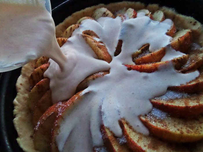 Мягкое, податливое тесто. Сметанная, всеми любимая, заливка и яблочки - доступнее, проще и вкуснее пирога не придумать