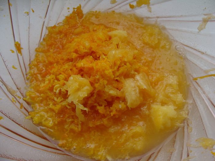 3.Соединяем с мукой и с апельсиновыми компонентами. Размешиваем.