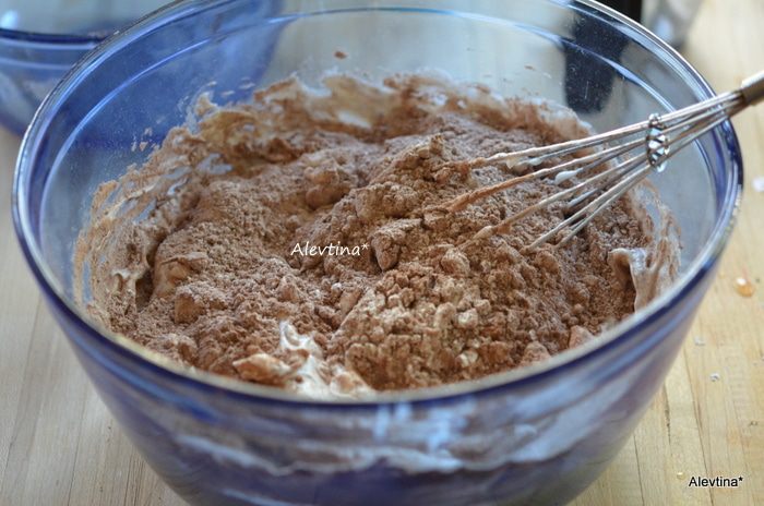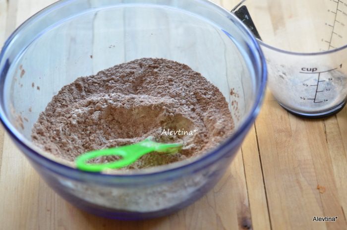 Смешать в небольшой емкости порошок какао, муку, разрыхлитель.