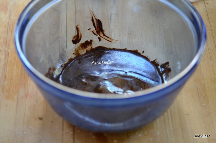 Растопить в микроволновке несладкий шоколад для выпечки, если у вас сладкий, сократите количество сахара, отставить в сторону и дать остыть.