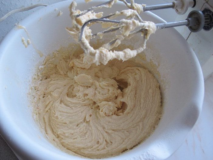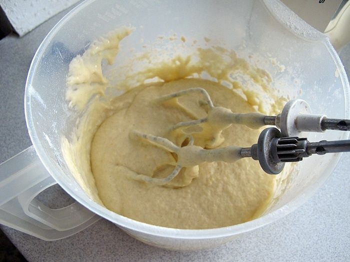 В жидкую смесь при непрерывном размешивании введите мучную смесь. Тесто получается достаточно густое.