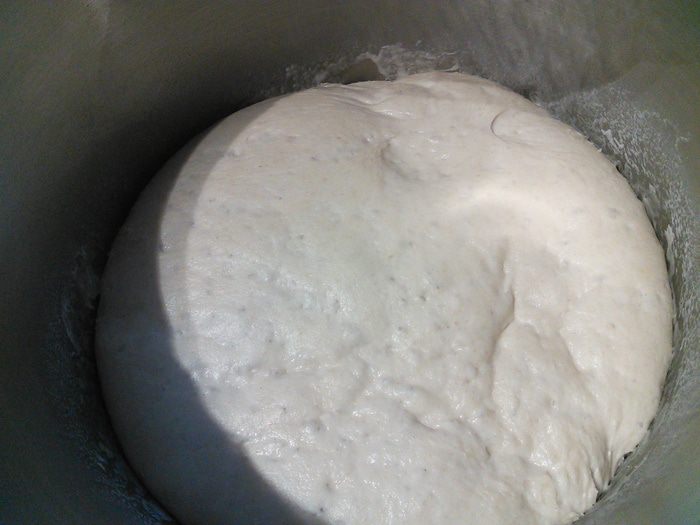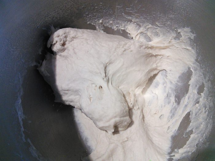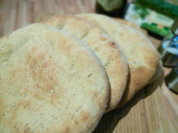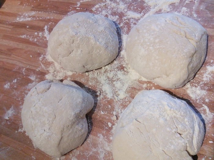 Разделите на 4 части. Скатайте в шарики и оставьте по плёнкой на 15 мин отдохнуть. Теперь шарик рукой немного его распластайте, чтобы он превратился в плоский круг, поворачивайте его в воздухе как руль в одном направлении по кругу кусочек за кусочком. Не тяните, достаточно силы тяжести самого теста. У вас должен получиться лаваш примерно 0,5 см высотой. Рант в этом случае получается немного утолщенным.