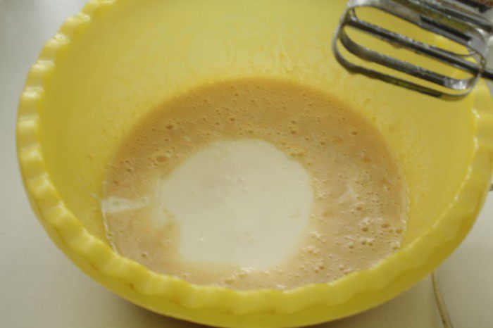 Добавить кефир и перемешать.