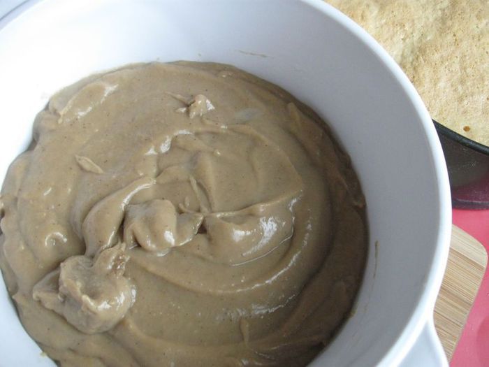 Сразу снять с огня, перелить в миску для взбивания или кухонный комбайн и взбивать на максимальной скорости, до образования пушистой консистенции, когда струйка, стекающая с венчика, оставляет след на поверхности массы.
