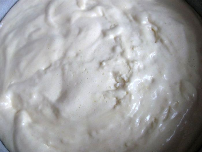 Поставить на медленный огонь и постоянно помешивая, довести яичную смесь до температуры 45*С. Если термометра нет, то нужно нагревать яичную смесь 1,5-2 минуты, затем попробовать капнуть на руку – так вы лучше почувствуете температуру.