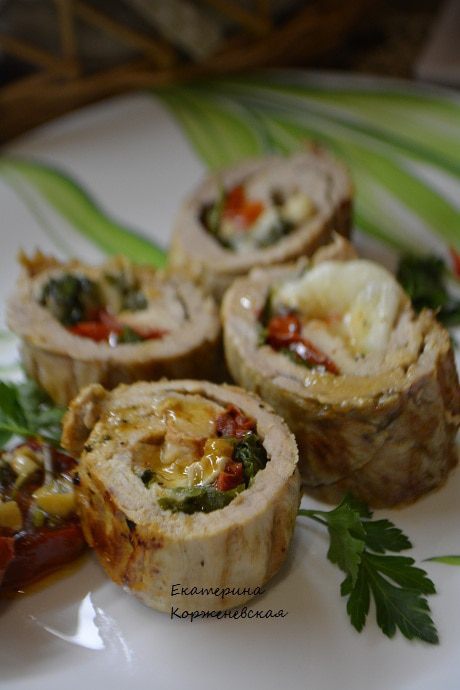 Это блюдо будет украшением любого стола! Идеальное итальянское сочетание:томаты,моцарелла и базилик. И все это завернуто в сочное мясо.Невозможно устоять!