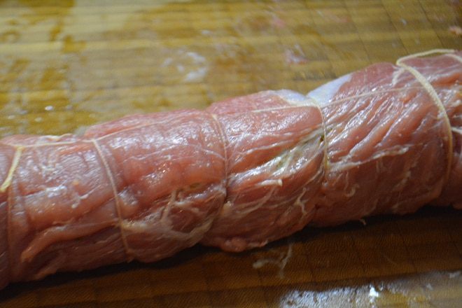 Свернуть мясо в рулет. И закрепить кулинарной нитью.