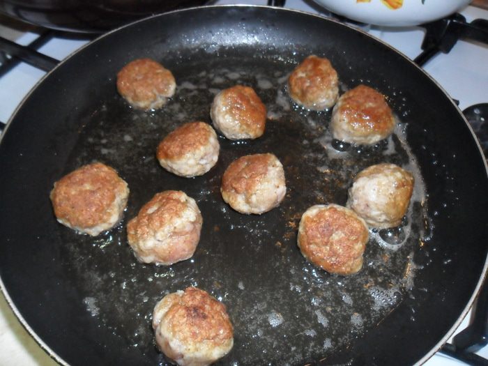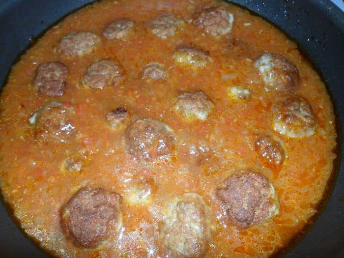 Обжаренные тефтели переложите в соус, доведите до кипения, накройте крышкой, уменьшите огонь и готовьте 35-45 минут.