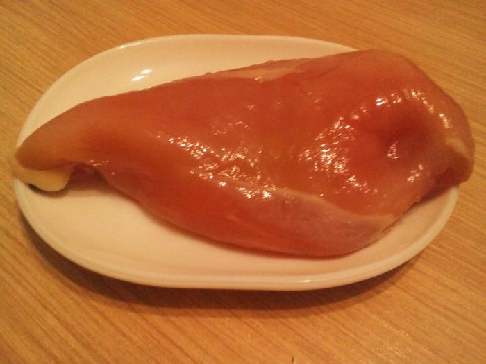 Куриное филе отварить. Для этого вскипятить воду, добавить соль, лавровый лист. Положить курицу, вода должна полностью закрывать мясо. Снова довести до кипения, выключить огонь и дать постоять под крышкой 10 минут. Затем вынуть курицу, остудить.