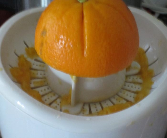 Натереть цедру 1 апельсина и выжать сок. Оставшийся апельсин почистить и нарезать на 8 кружочков.