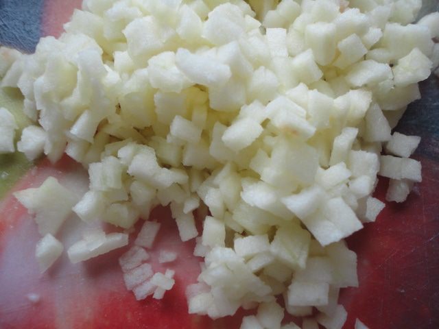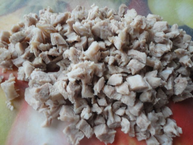 Все ингредиенты порезаны очень мелким кубиком.