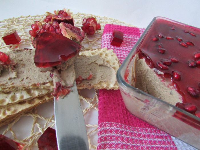 Украсьте паштет зернами граната и отправьте в холодильник до полного застывания желе.