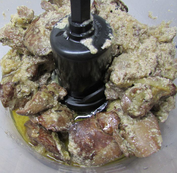 Выложите всю массу в чашу блендера. Измельчите до однородности.