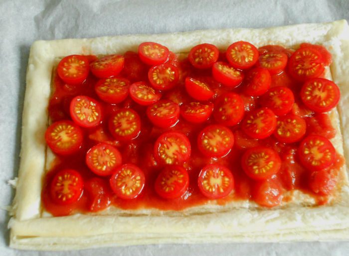 Томатный пирог из слоёного теста