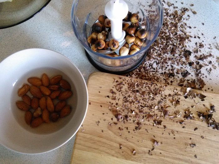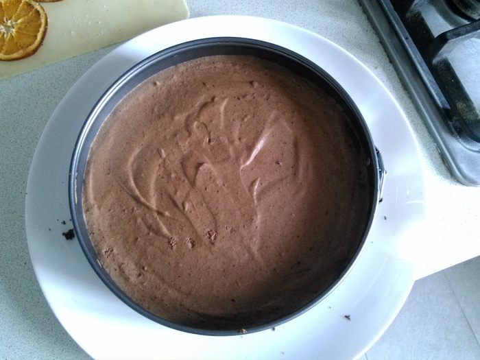 Тем временем приготовим апельсины. Очистить их от кожуры и грубых белых прожилок, залить водой и уварить. Когда они станут помягче, горькую воду слить, налить новой и уварить еще раз. Сахар и лимонный сок добавляйте постепенно по вкусу, т.к. вареные апельсины мне показались вовсе безвкусными) Пюрировать погружным блендером и еще уварить. Слегка остудить.