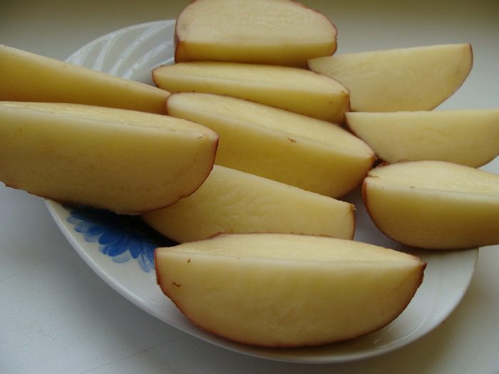 Вкусное диетическое блюдо, ароматное и красивое. А, главное, не нужно чистить картофель, он съедается вместе со шкуркой. К нему можно приготовить сметанный соус с чесноком и солью. Просто макаем кусочки в сметану. Приятного аппетита!