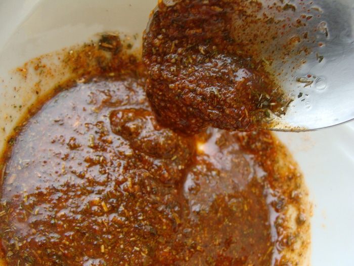 Специи смешать, залить маслом.