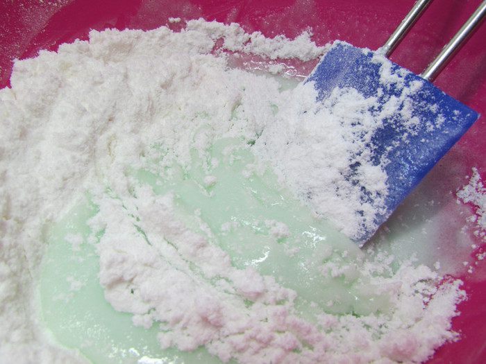 Постепенно добавляйте сахарную пудру, вымешивая, до образования очень плотной массы. Если необходимо, добавьте еще немного пудры.