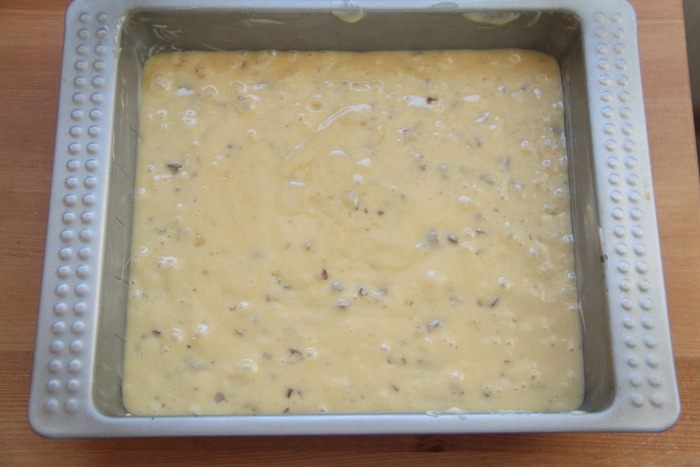 Форму для выпечки (у меня 19х21см) смазать сливочным маслом, вылить тесто.