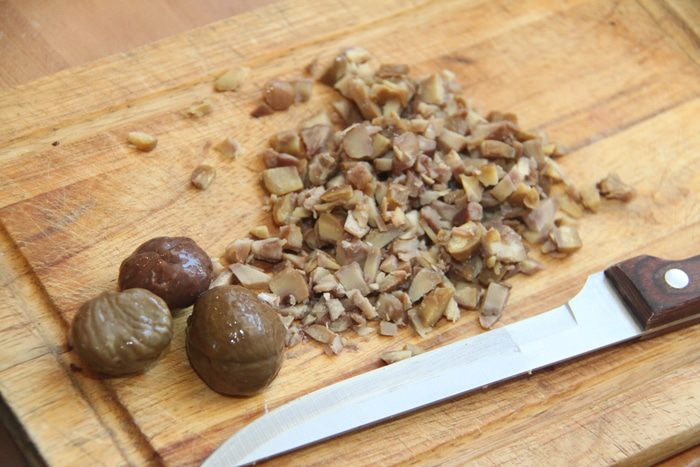 В тесто добавить семена фенхеля и бОльшую часть (процентов 80) рубленых каштанов.