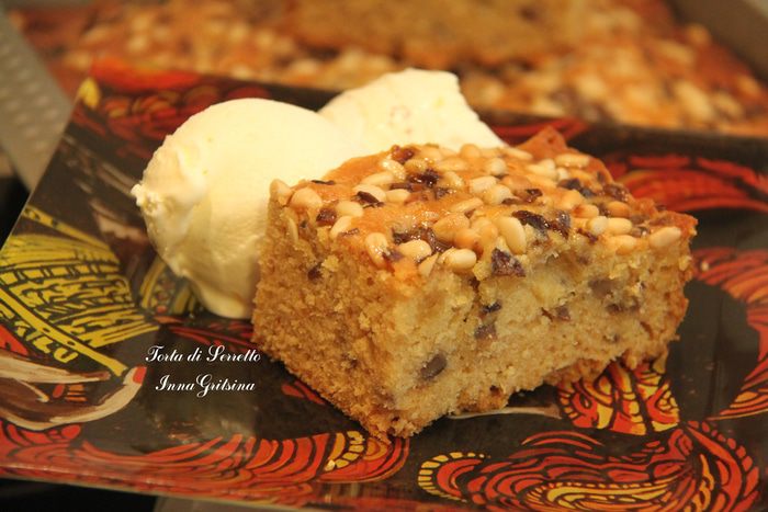 Torta di Serretto подавать тёплым, с густой сметаной или ванильным мороженым.