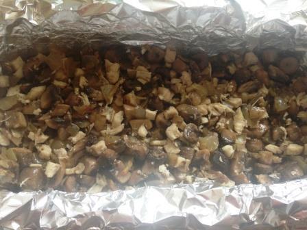 Завернуть края фольги и поставить форму в разогретую до 200 гр. духовку на 20 мин.