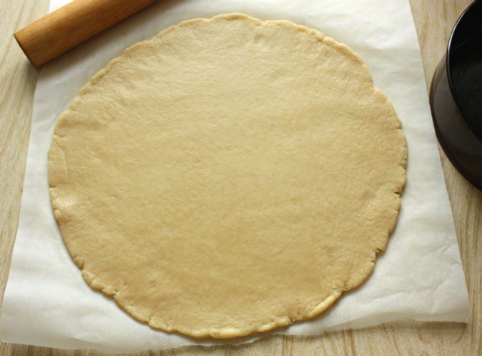 Масло нарезать кусочками, добавить в миску и порубить ножом до состояния крошек. Добавить яйцо и замесить быстро гладкое тесто. Собрать тесто в шар, обернуть пищевой плёнкой и убрать в холодильник на 30 минут.