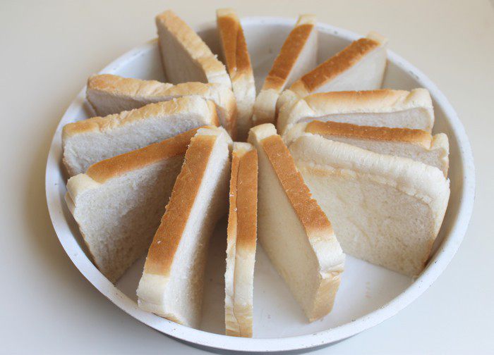 Нам нужен батон. Но у меня его не оказалось. Я взяла просто тостовый хлеб. И слегка его обрезала по форме.