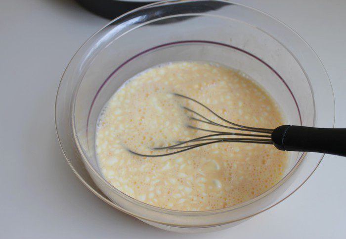 Молоко смешаем с яйцами, добавим майонез. Тут не обязательно строго следовать рецепту. Я кладу всегда по вкусу. Еще добавим соль, орех мускатный.