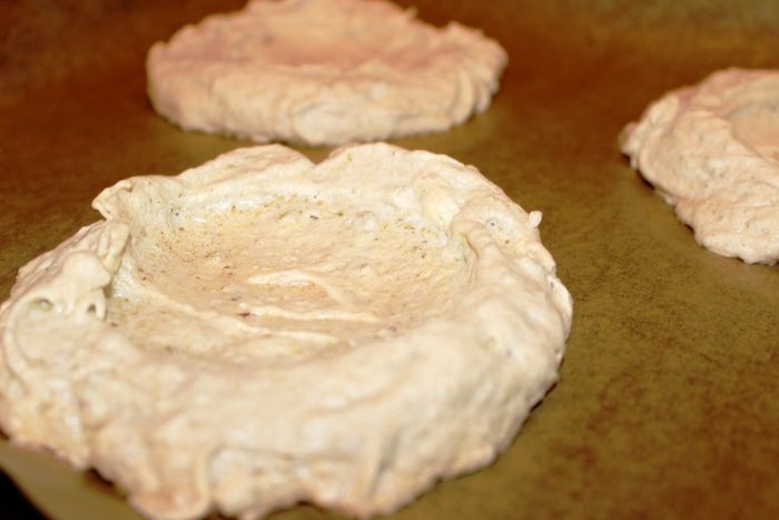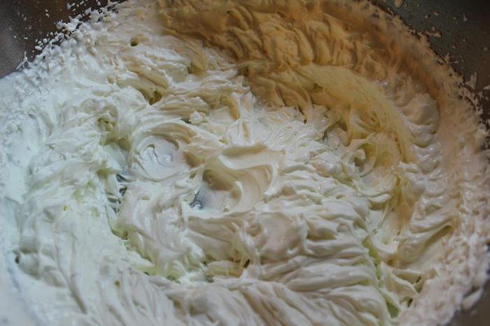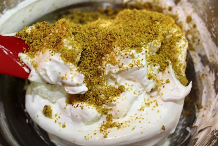 Фисташки для крема не следует измельчать слишком мелко, а всего несколько секунд... так, чтобы ощущались кусочки. Аккуратно вмешать орехи в сливки и поставить в холодильник, накрыв вплотную пищевой пленкой (именно вплотную, чтобы не образовывался конденсат в виде капелек воды).